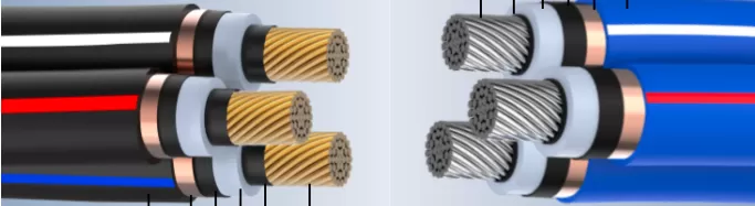 高压CV电缆主要有E-T型和E-E型2种规格。两者的区别特别在于外部半导电层的制造方法和结构。