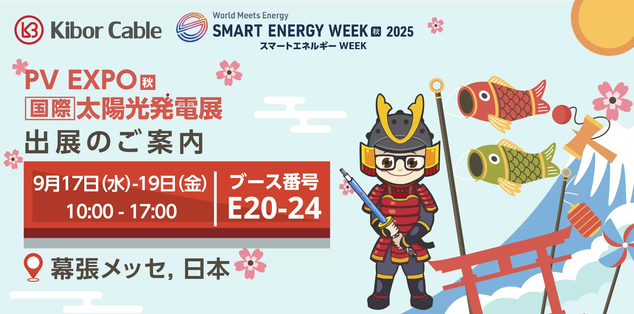 KIBOR CABLE将参展2025年9月17日(周三)至19日(周五)在千叶县幕张展览馆举办的“PV EXPO【秋】~第21届[国际]太阳能发电展”。